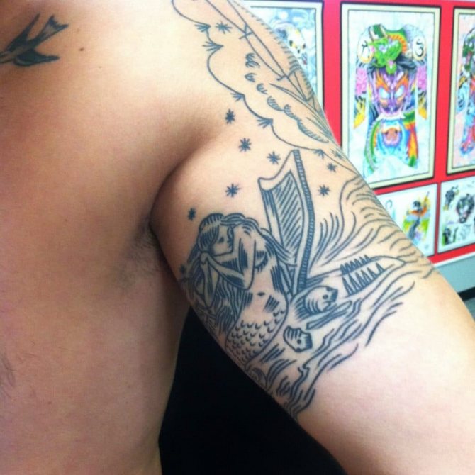 This drawing is great for a person who develops and improves their body. Often such a tattoo is chosen by those whose professional vocation is associated with the sea and water: