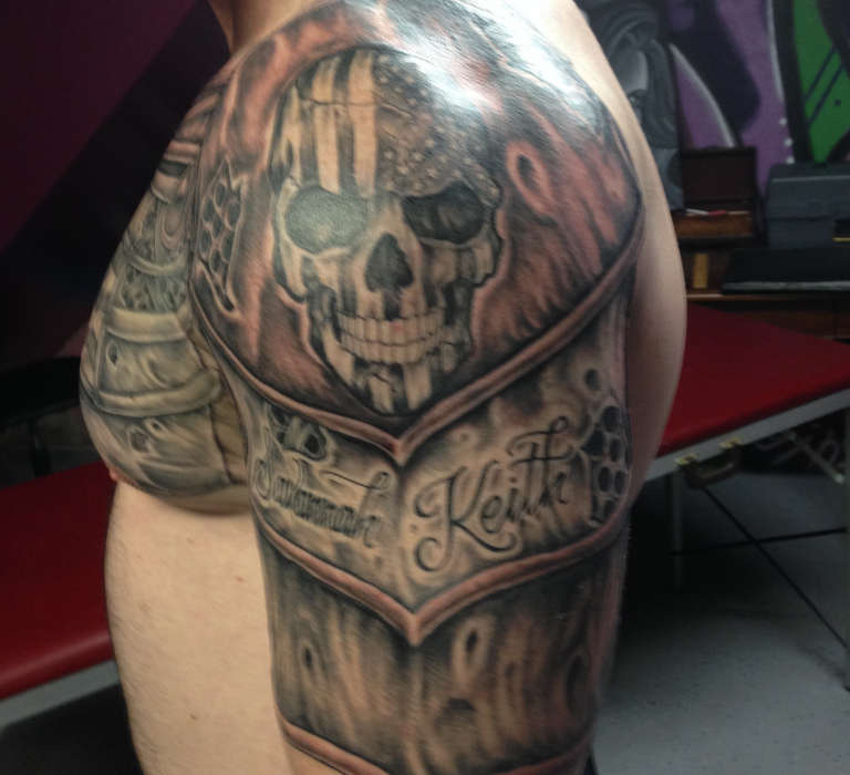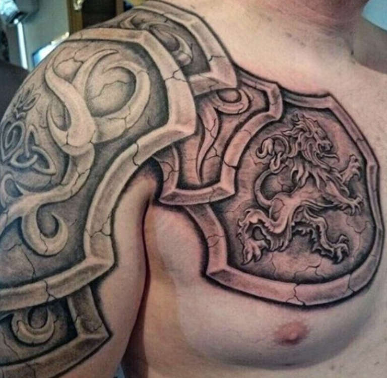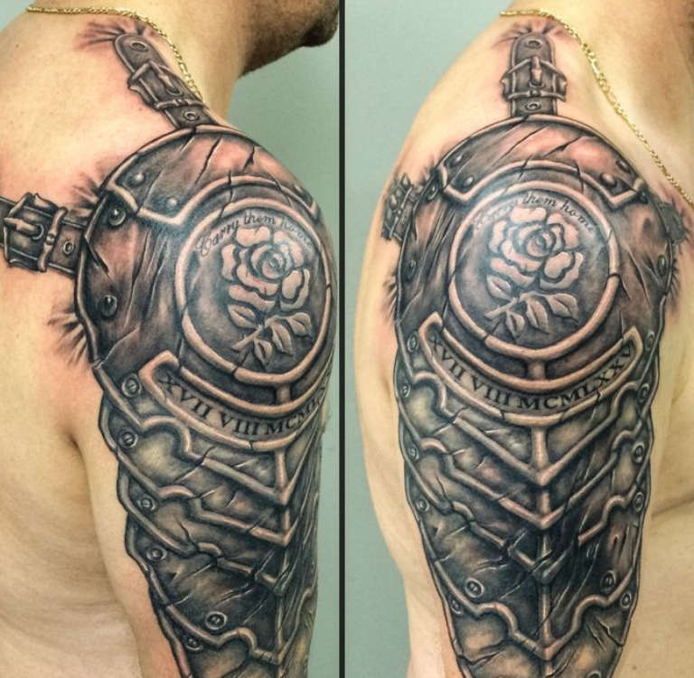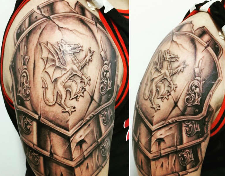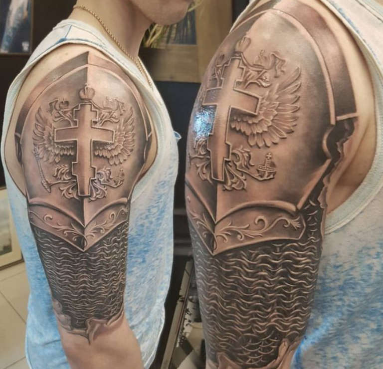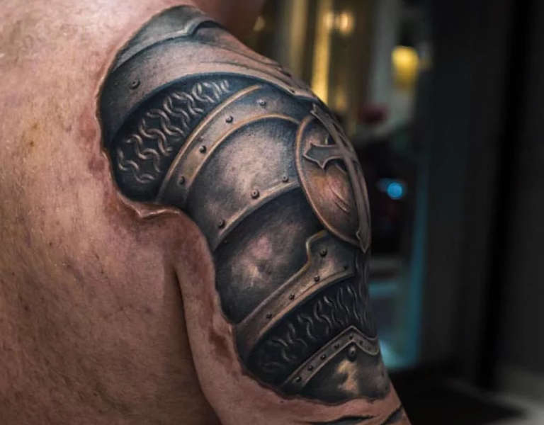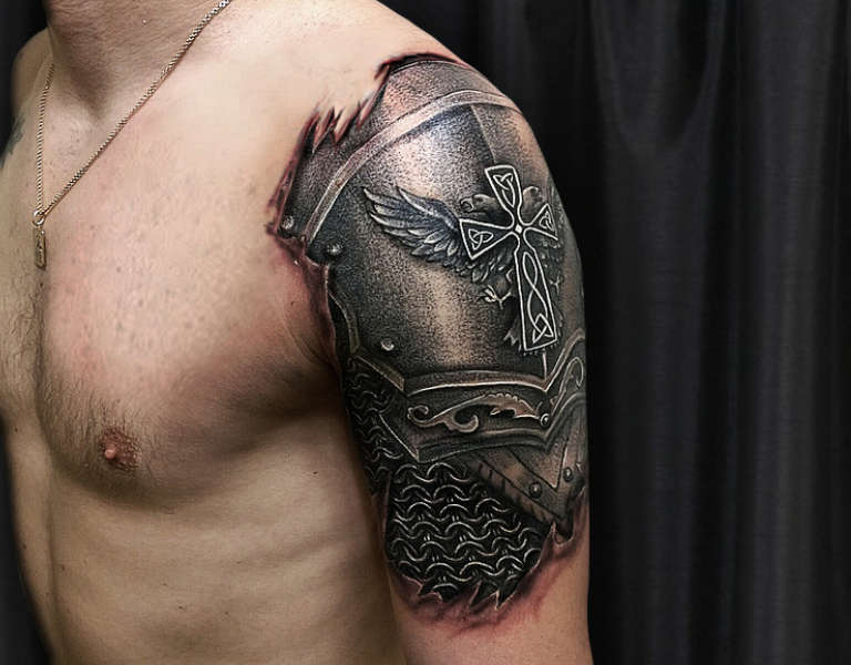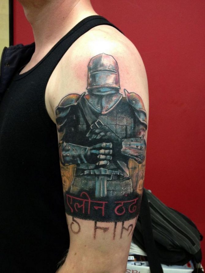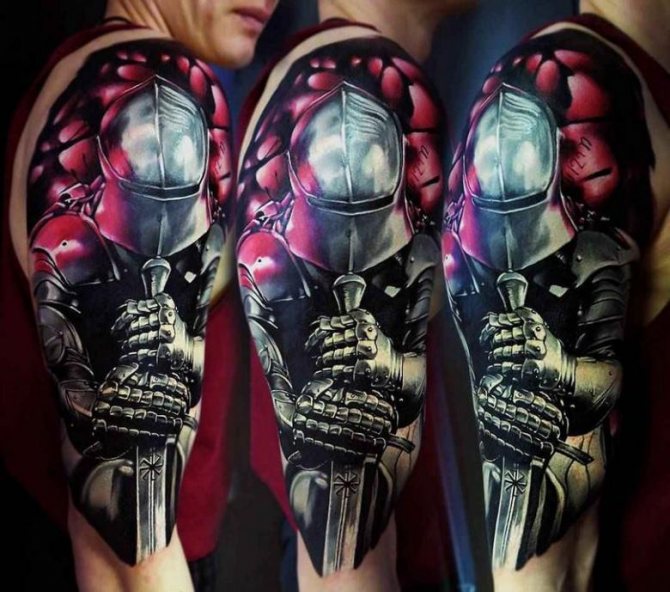 Tattoo of a knight on the shoulder, photo from: