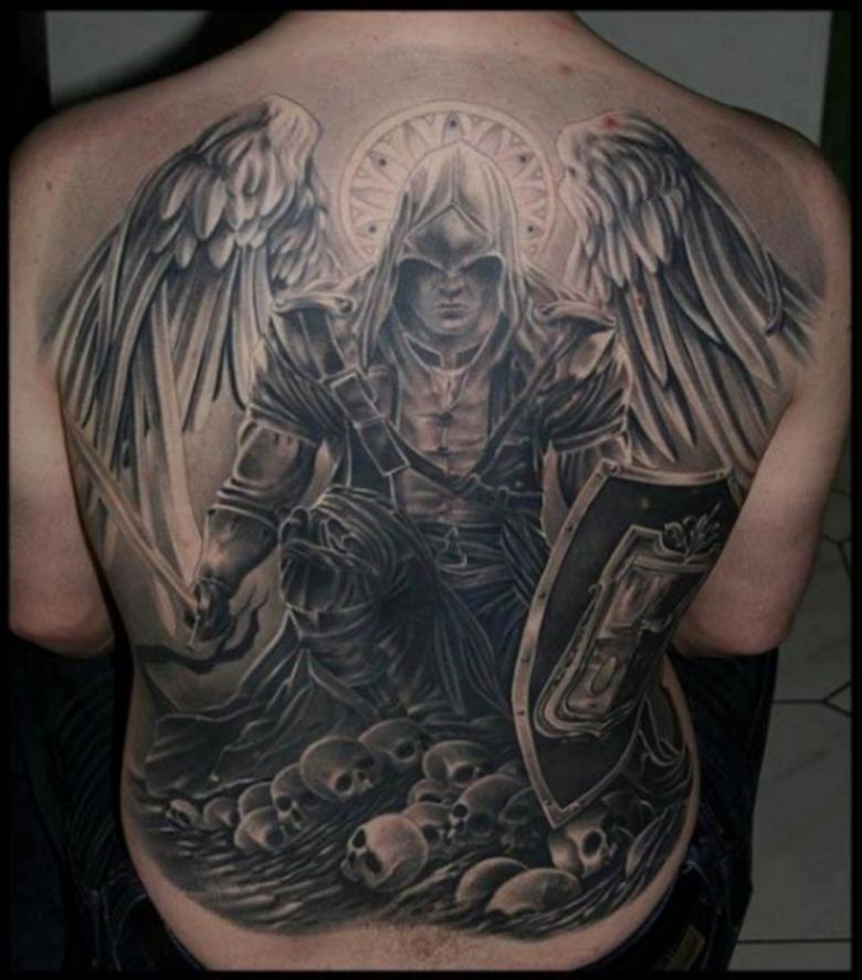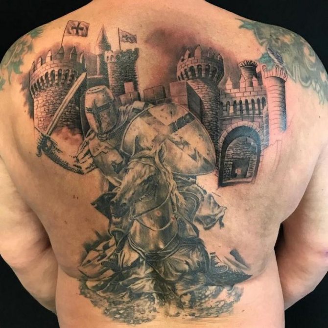 If you like a large tattoo, engage the back - a favorite field of activity of any master of tattooing. The artwork on the back, with a knight in the foreground, will delight any observer. Of course, for this you will have to carefully choose a master who is able to beat art, not partaks.