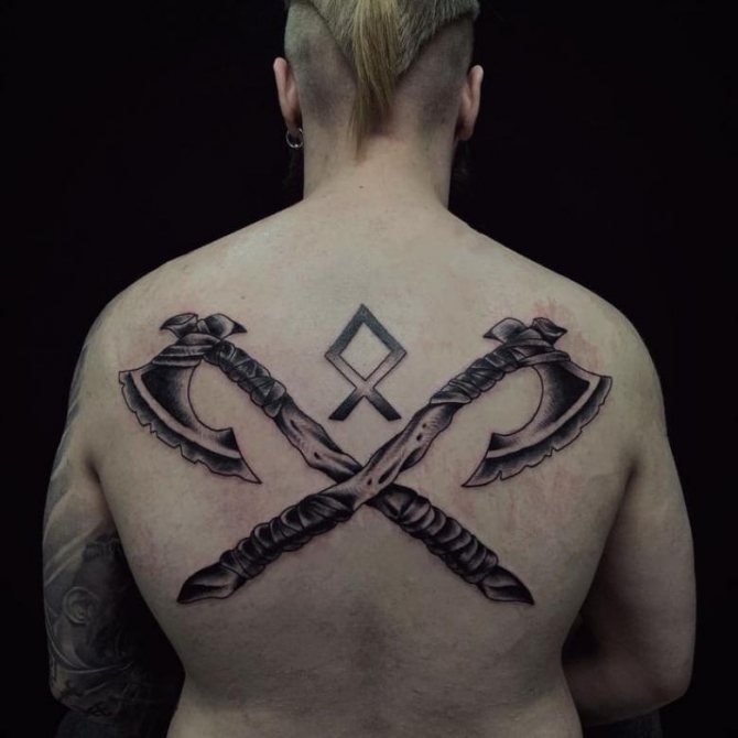If a pair of axes crossed - it is a sign of readiness for battle. No matter what gender the owner belongs to, he is ready to proudly take the fight and fight to the last, without waiting for help or an opportunity to escape.
