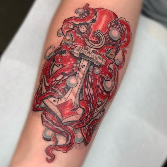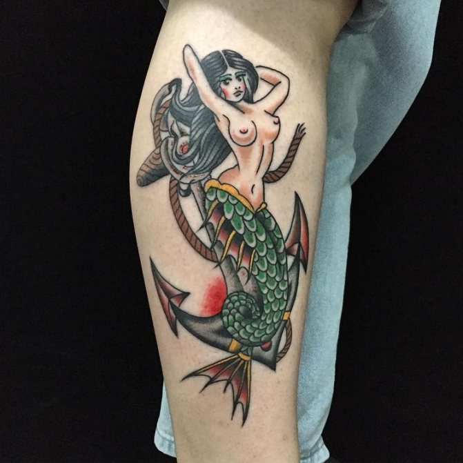 Depending on the style, the image may be cartoonish or close to reality. For example, clients often stuff an anchor with a snake instead of a string, and instead of a mermaid, a skeleton in a pirate hat sits on the anchor. At the same time, the meaning of the tattoo can be completely different. Sometimes the headband of the anchor is supplemented with a bowl with a snake, which is a reference to the doctor's work on seagoing vessels.