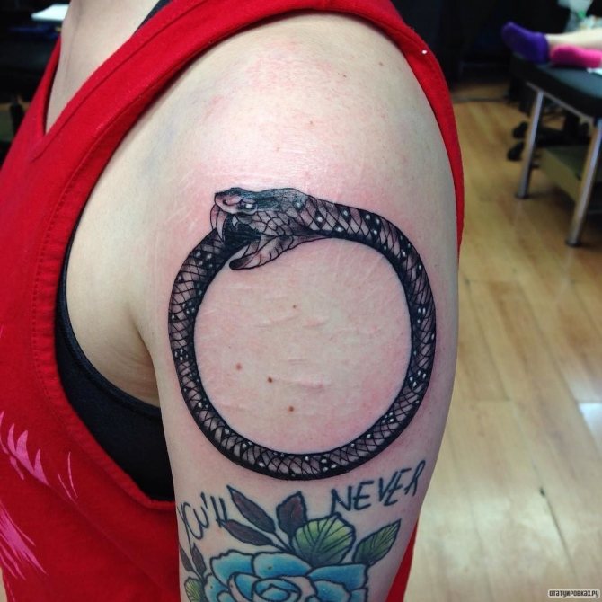 So the snake tattoo with renewed skin symbolizes resurrection, rebirth and youth. Such a tattoo characterizes the wearer as a person who has radically reconsidered his position in life. A symbol of permanence, infinity and eternity is a body circular tattoo, where the snake swallows its tail. Fiery snakes mean welfare, and the cobra is generally considered a drawing of the Goddesses.