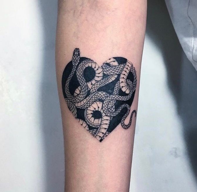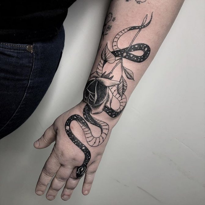 Such versatile interpretations of images on the same animal tattoo have deep historical roots. First of all, it is connected with the complete opposite of the attitude to the snake in different ancient peoples. In some civilizations, the snake is a symbol of wisdom and fertility. In others - the personification of evil forces. That is why those who wish to do a tattoo depicting the snake should be careful in choosing the composition of the drawing and the background of the image. Be sure to consult with the ring before ordering a particular tattoo.