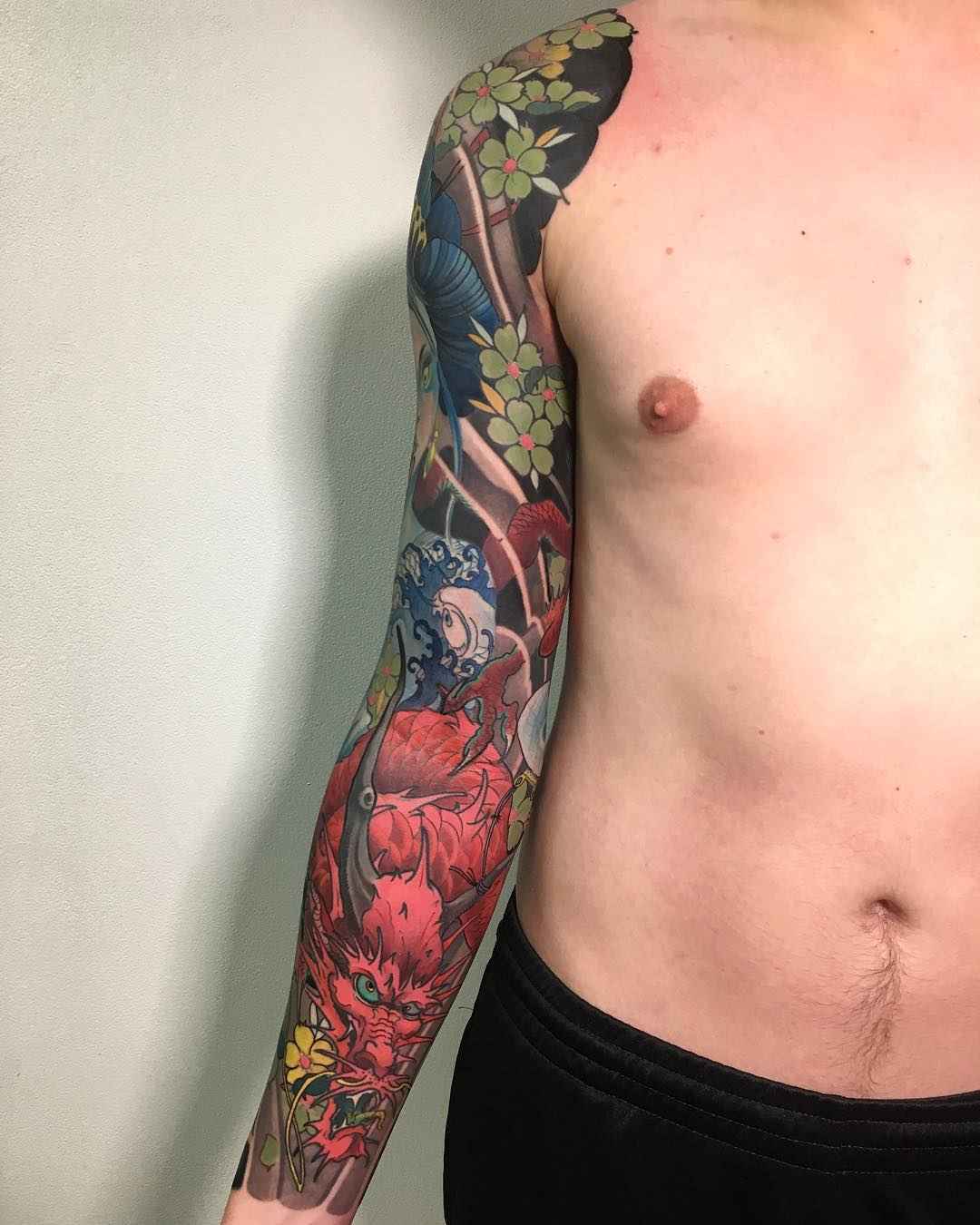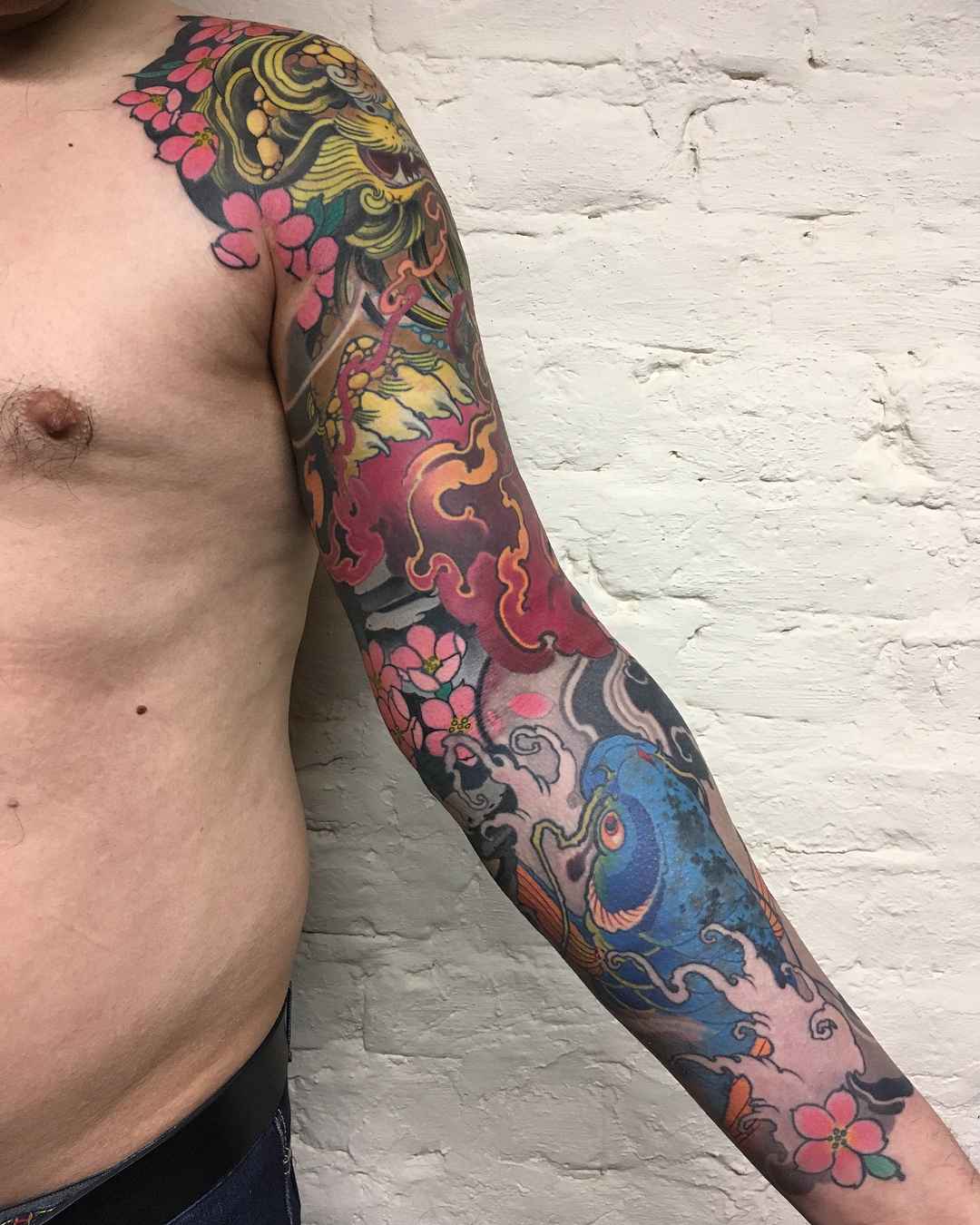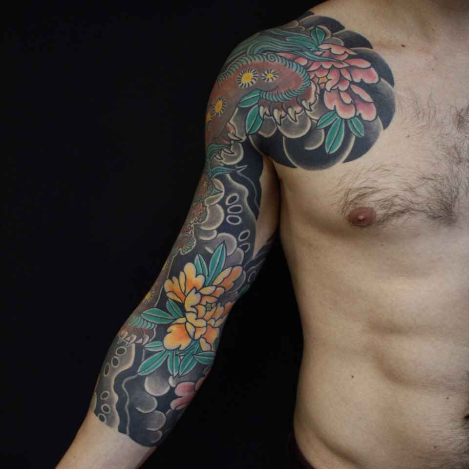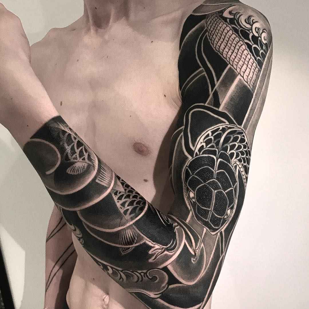 Volumetric tattoo sleeve in the oriental technique is a good opportunity for any master to demonstrate his exceptional degree of creativity and professionalism. And for the owner of the tattoo such a sleeve will be a good opportunity to emphasize his strong character traits, demonstrate charisma and brutality.