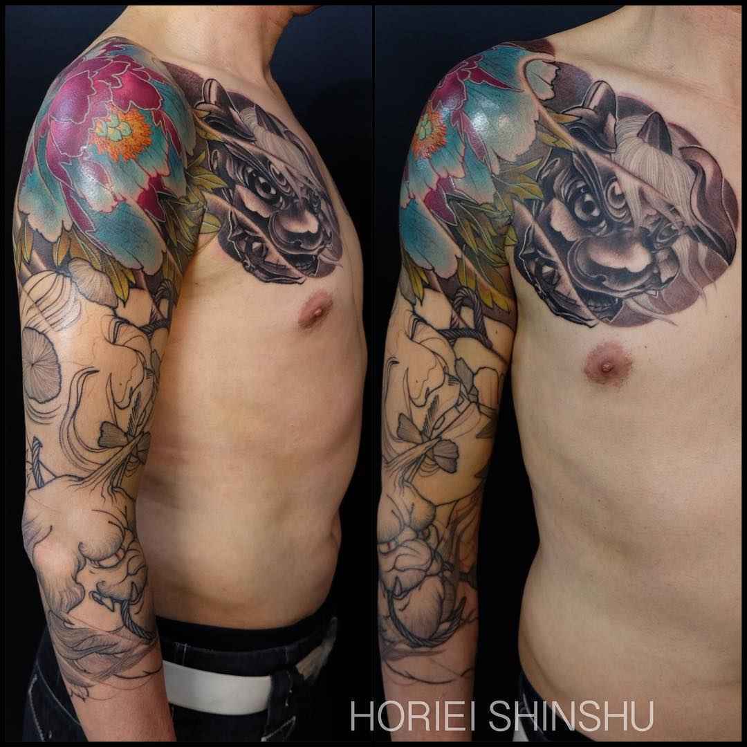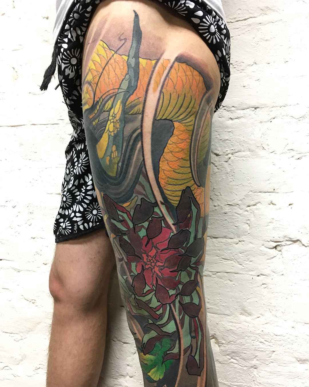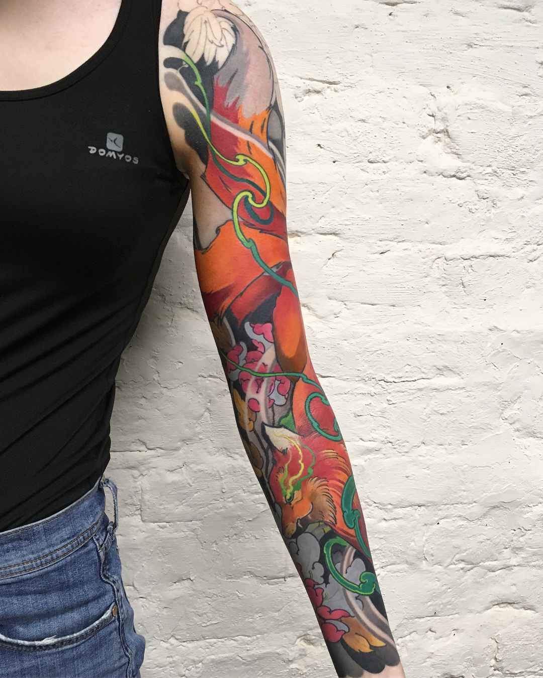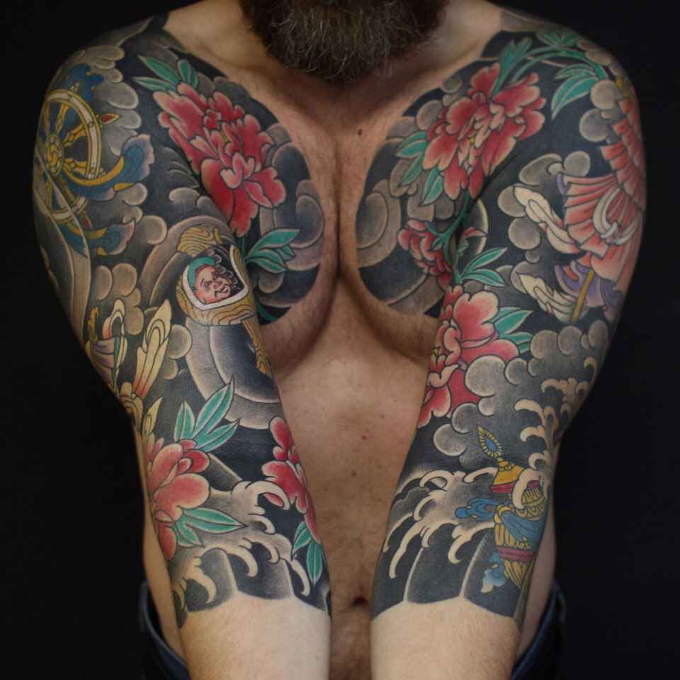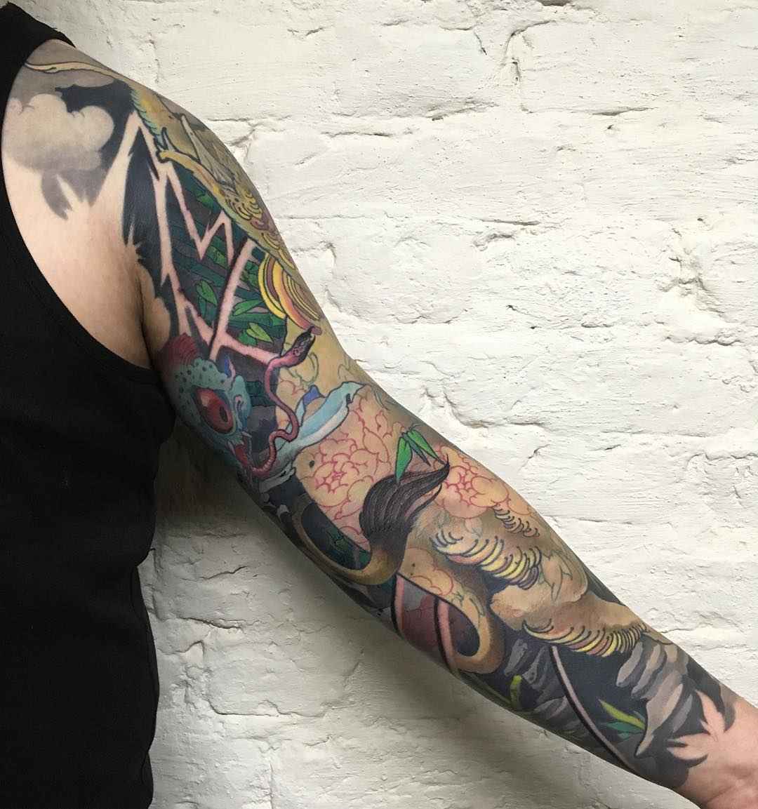 Volumetric tattoo sleeve in the oriental technique is a good opportunity for any master to demonstrate his exceptional degree of creativity and professionalism. And for the owner of the tattoo such a sleeve will be a good opportunity to emphasize his strong character traits, demonstrate charisma and brutality.