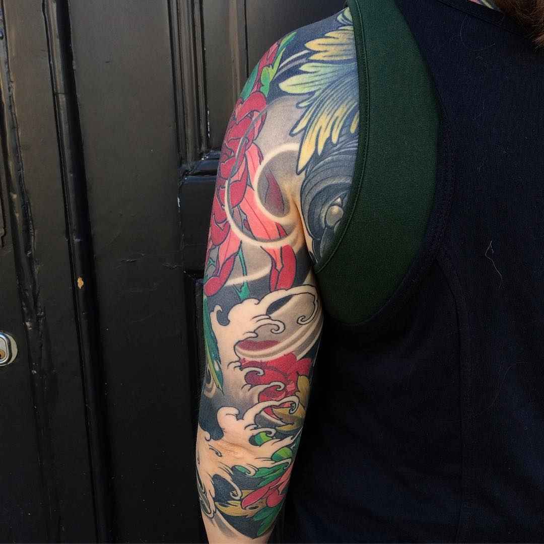 Sages believed that the tattoo influenced the wearer by developing certain qualities in him or her. The Japanese style tattoo arm has many complex elements and meanings. Initially, they were just images without clear outlines. Later in the culture, there were images of animals that were applied for: