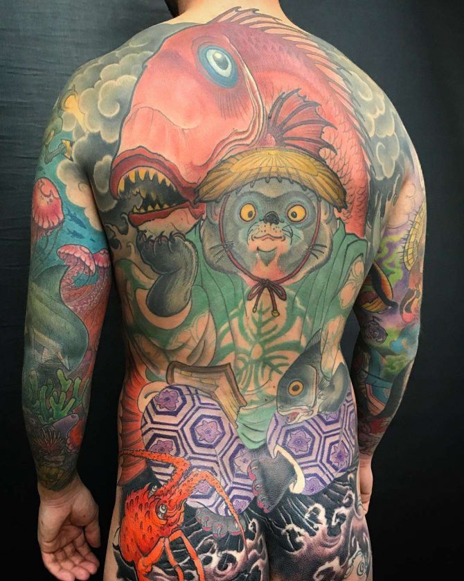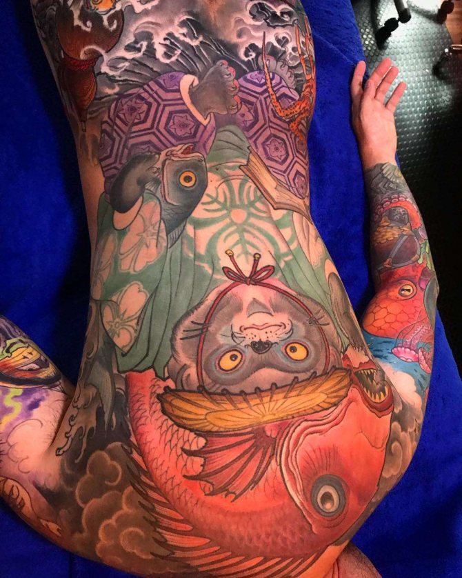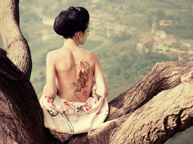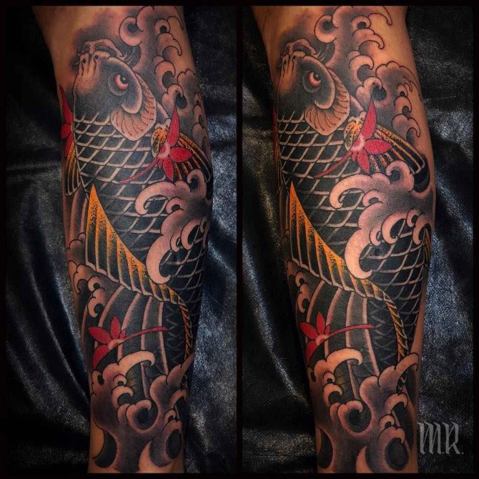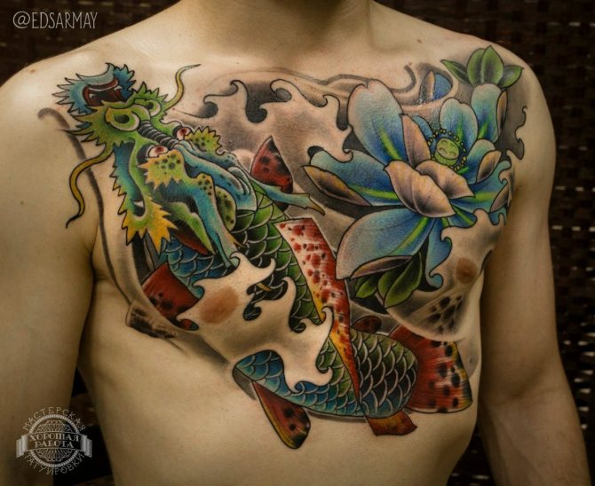 Very often images of animals are used in tattoos. In the Japanese style, there are also certain types of animals. For example, the tiger, denoting strength, fearlessness and power. The dragon symbolizes immense good luck. The image of the snake is a symbol of evil. And drawings in the form of fish bear in themselves a symbol of calmness, wisdom and courage.