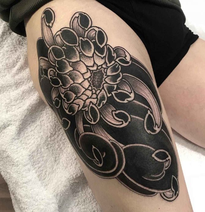Tattoos in black shades are mostly preferred by men, thus trying to express their mood and character. In the Japanese style there are many variants of ornaments made exactly in black shades. The beautiful half of humanity uses black tattoos in the form of inscriptions to decorate their bodies. Also girls prefer a body decoration in the form of a black lotus, which denotes life and complete immortality. With the help of dark colors, any master will be able to convey the inner feelings of the future owner of the tattoo. All drawings, expressed in black tones, carry a deep and unique meaning. Only a real master can cope with such a task.