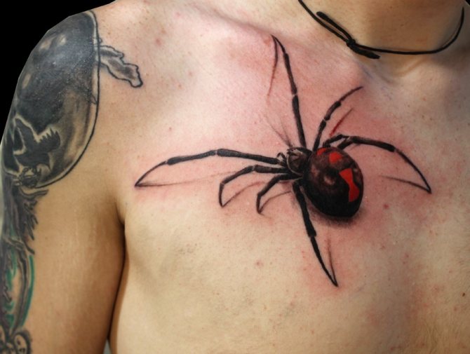 It is believed that Tattoo of the Black Widow - A symbol of femme fatale, strong and independent. Tattoo of the Black Widow choose strong women accustomed all achieve independently. This tattoo does not mean hatred for men, it is a symbol of severity, strong character and complete inner freedom.