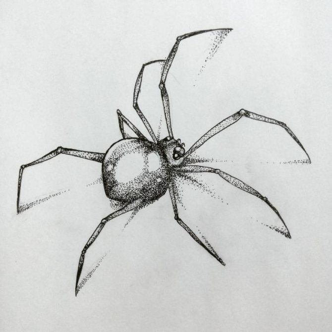The second main point is that the feet are large, and they, like arched struts, hold the weight of the spider's body. You have to imagine and understand. First picture the paws on the right, there are four of them. Now distribute and depict the legs on the left. That's the way the spider turned out from the side - a wonderful and slender beauty.
