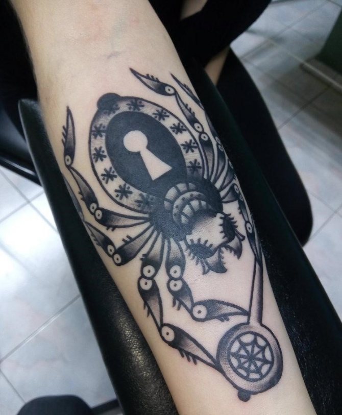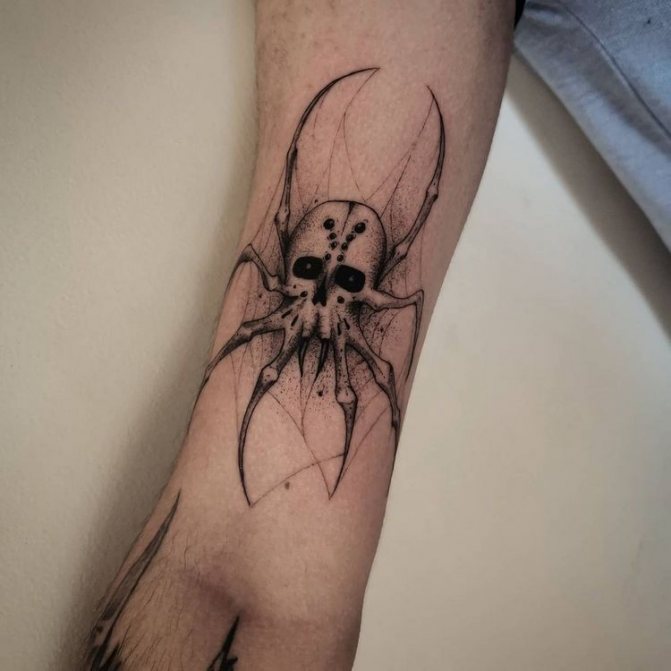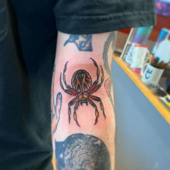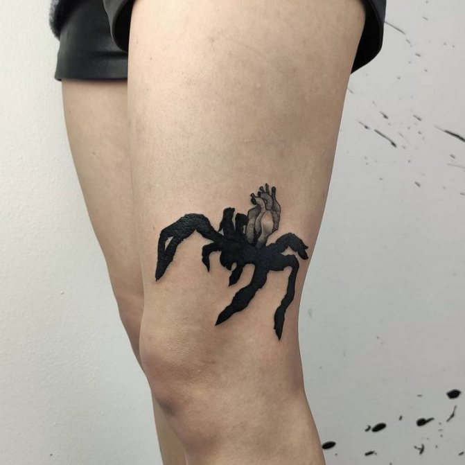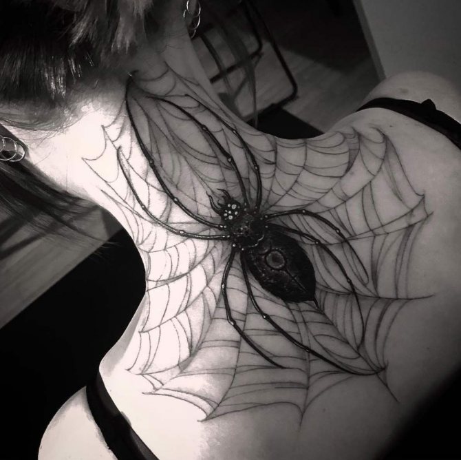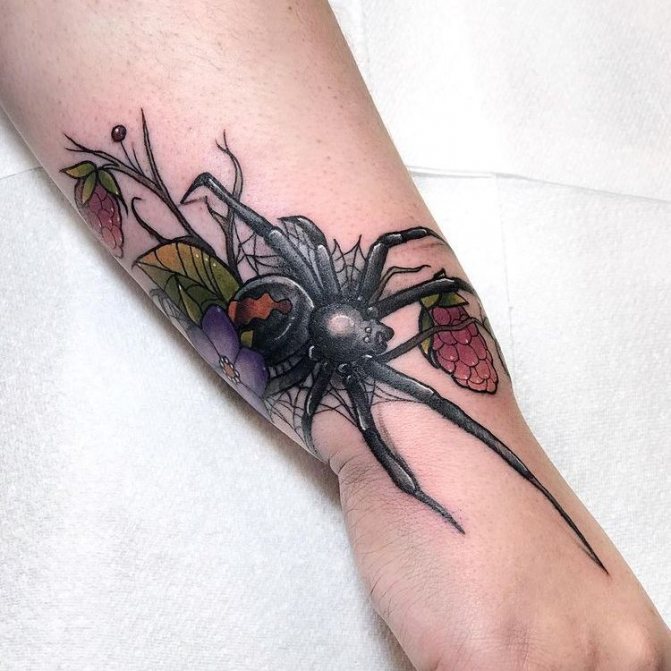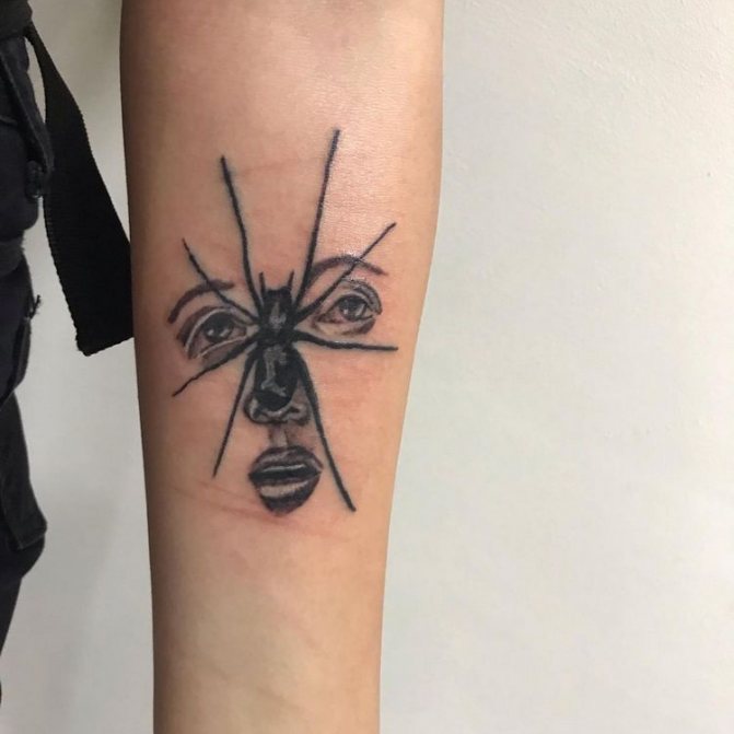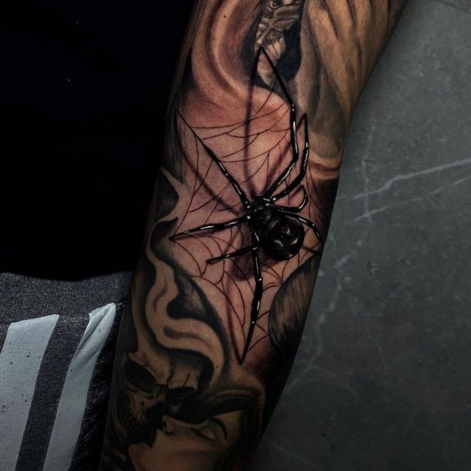Girls also often get tattoos with spiders. It is a symbol of Of hard work, subtle intelligence and cunning, the ability to get out of any situation. In addition, the spider can be portrayed very sophisticated and beautiful, which brings a special flavor to the image.
