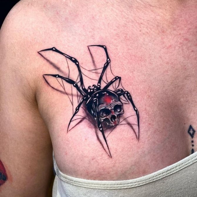 3. According to the third version tattoo spider means a trapFrom which the person has to get out. All of us in life have found ourselves in difficult crisis situations. Some have had to realize that their life is as fragile as a spider's web. And yet, even from the most difficult situations you can always find a way out.