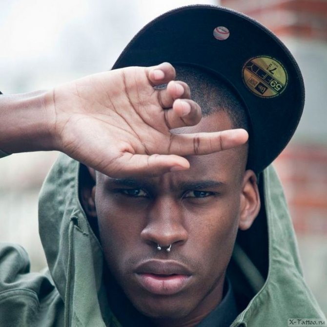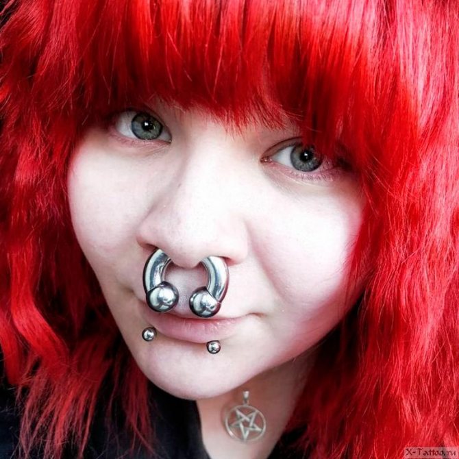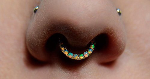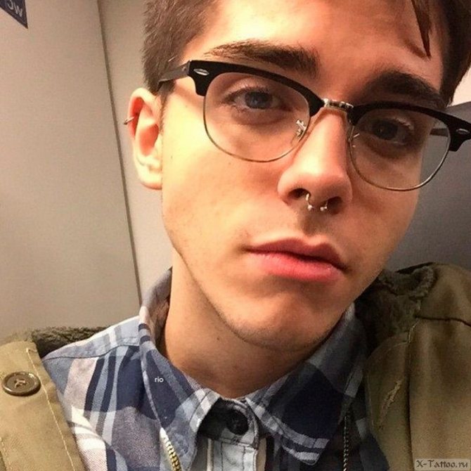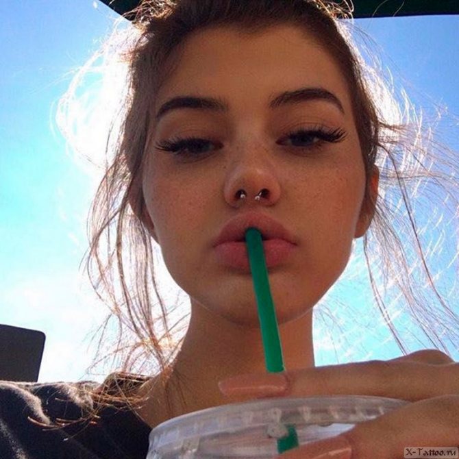 The word "septum" (lat. septum) translates as "septum". A septum piercing is a piercing of the nasal septum in and between the nostril. If you pinch it with two fingers, you will feel two cartilages there. One goes along the entire nose from top to bottom and the other goes from your upper lip to the tip of your nose. In the place between these two cartilages (which is where the thinnest part of the septum is), just a puncture is made. Closer to the tip of the nose.
