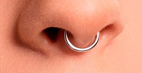 Nasal septum piercing is notable also by the fact that it can be hidden from others, without removing the ornament. To do this, in the hole should be a circular or retainer, which, if desired, can be tucked inside the nose. But note that such manipulation is allowed only with fully healed punctures.