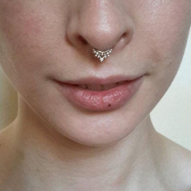 The septum looks beautiful and provocative, but it requires a minimally invasive surgery, which can lead to complications. If you decide to have a piercing, take into account all the nuances and follow the rules of care. Neglectful attitude to the piercing threatens inflammation, rejection and destruction of the nasal septum. Be attentive and carefully monitor the healing process.