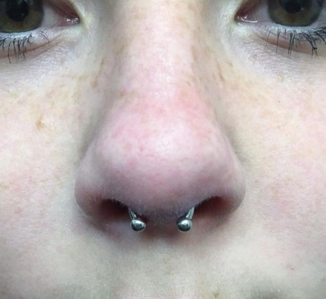 In order for the septum piercing to heal faster, it is necessary to follow simple rules. It is necessary not to interfere with the body's own recovery and carefully monitor hygiene. In the wound surface should not get dust, dirt, it is forbidden to touch the piercing with unwashed hands.
