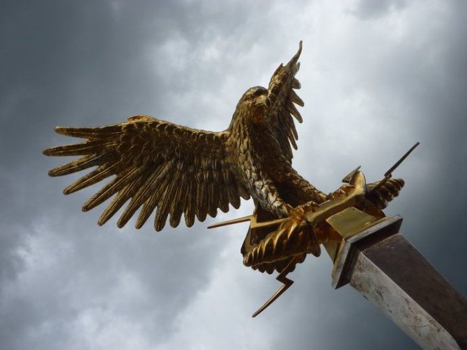 The eagle symbolizes spiritual victory, defeating evil forces with its claws and beak. Representatives of Christianity correlated the image of the bird with the ascension of Jesus Christ.