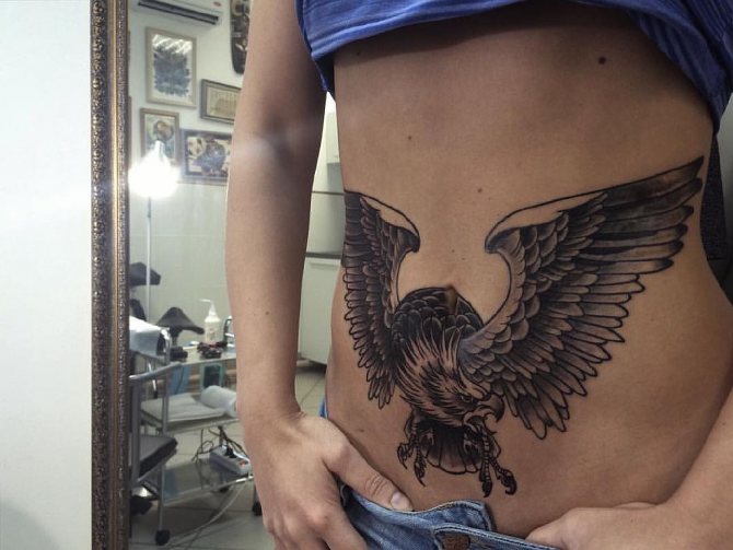 Often an eagle on such tattoos torments a woman. It is a symbol of power and strength. Sometimes such a drawing can have a purely hooligan meaning - the vulture attacked the bitch.