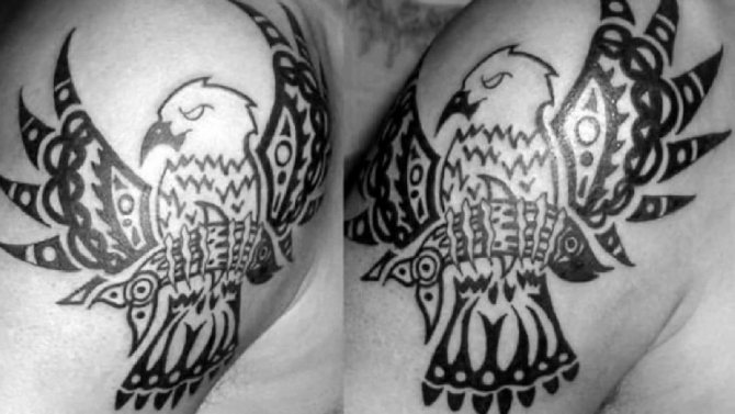 Indians equated the eagle with divine beings, he symbolized the power of the spirit, the union with nature. According to their beliefs, a tattoo with an eagle is considered a talisman that can protect people from the influence of evil forces.
