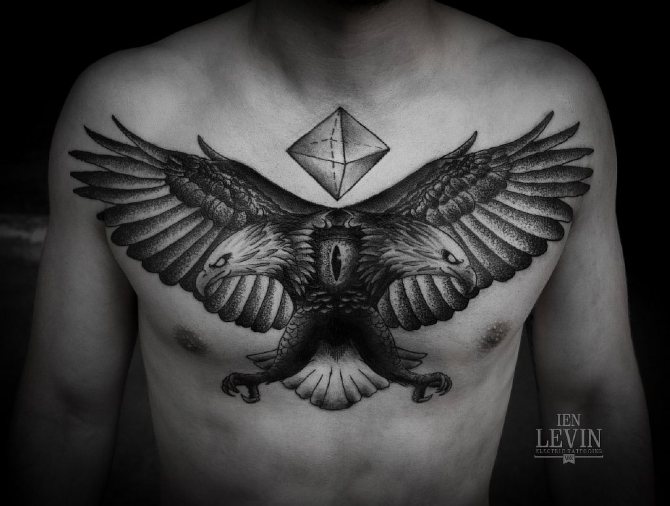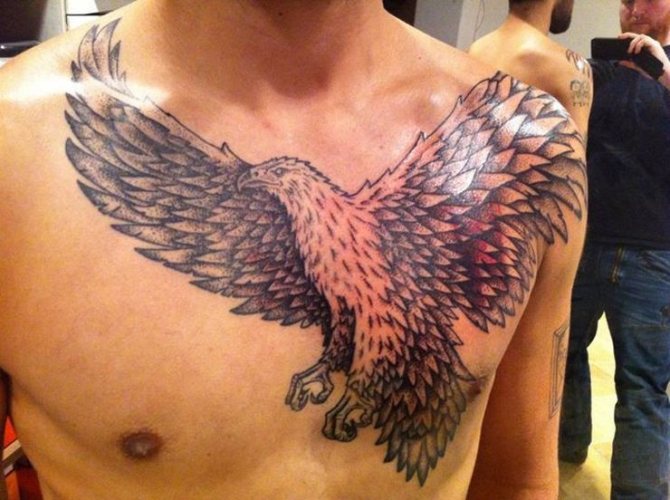 In the Middle Ages, among Christians, the eagle was associated with Jesus Christ, his ascension. Nowadays, the tattoo of an eagle on the chest speaks of love for God and strong faith in the Almighty.