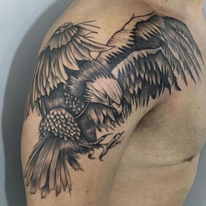 In America, the tattoo has a very different meaning. The white-headed eagle is depicted on the coat of arms, which makes the bird a symbol of patriotism, love for the motherland.