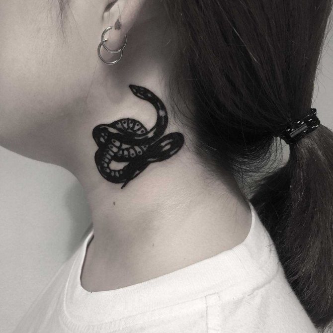 Tattoo with a snake on the neck of a girl suggests that its owner is a calculating person. It is worth noting that when choosing a tattoo design the fair sex girls think, first of all, not about the meaning of the image, but about its beauty.