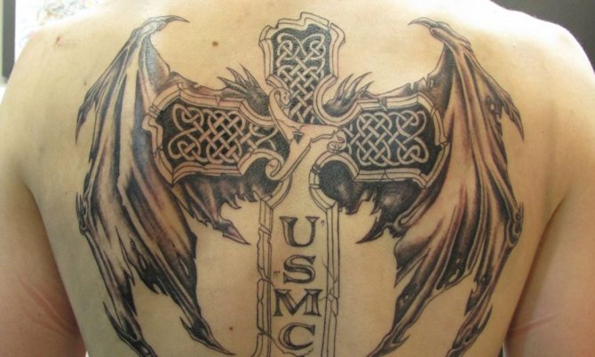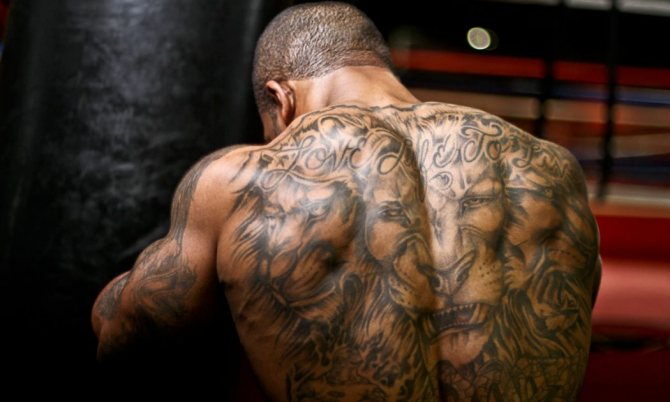 Tattoo on the back has two significant drawbacks: the back has along the spine a number of nerve endings, in connection with which the process of drawing will be painful, in addition it is necessary to remember that to look after the tattoo itself is extremely difficult.