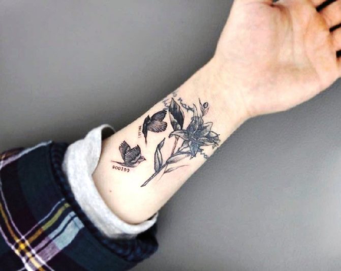 Flowers can be both in miniature and large, on the whole hand. Here already a lot depends on personal preferences of a girl. It is recommended to start with small tattoos to get used to and get used to.