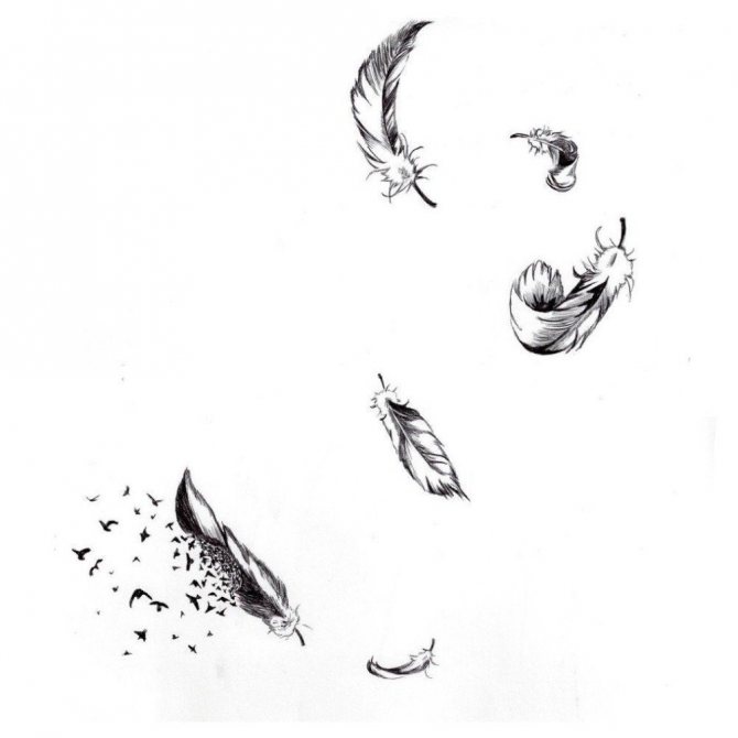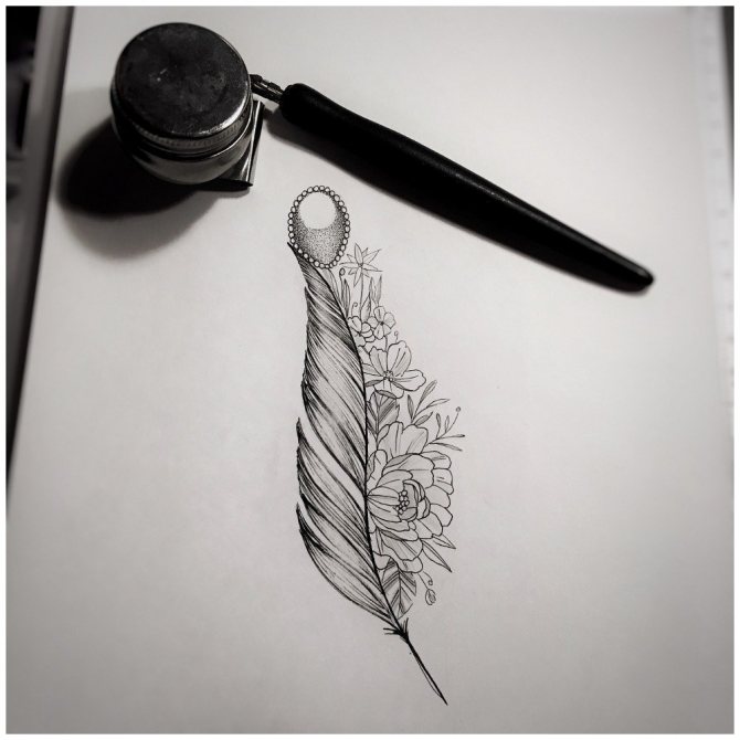 Tattoo feather choose girls who prefer freedom, love life and always have their own opinion. In addition, it looks very gentle. Most often the feather is printed on the collarbone and shoulder.