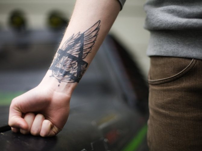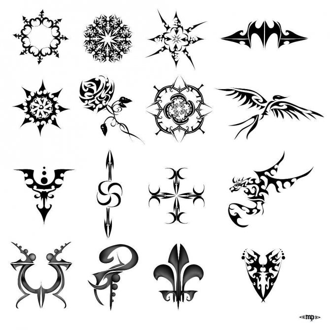 Symbols and signs - a fairly common theme for tattoos. These pictures prefer mysterious natures, who also want to have a tattoo, but do not want to reveal the meaning of the figure. The meaning is often known only by people enlightened in this matter.