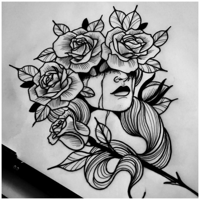 One of the favorite subjects for women's tattoos are flowers. Roses, poppies, leaves, twigs - all this looks very gentle on a woman's body.