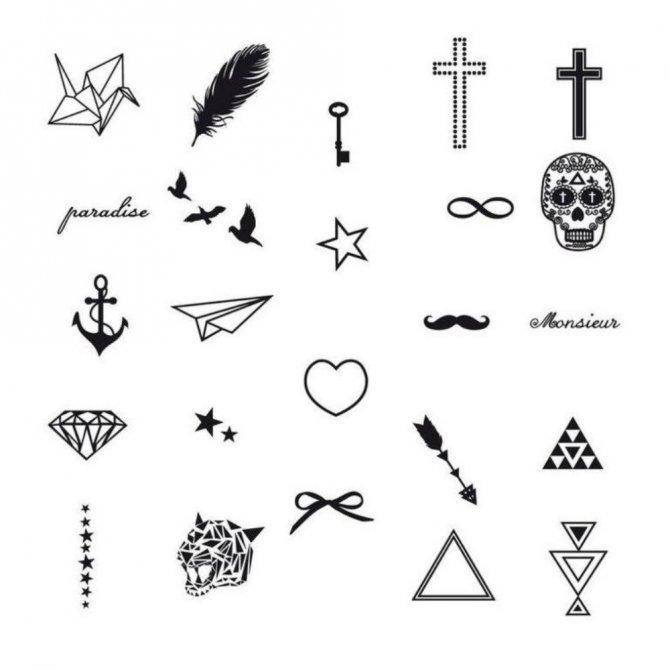 Mini tattoos are applied to the wrist, shoulder, behind the ear, on the ankle, on the finger, etc. Small tattoos look neater, gentler, and easier to hide. It is the small tattoos that don't get boring as quickly, because you see them less often.