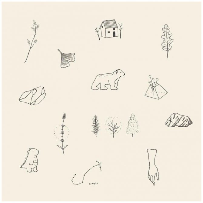 Another tattoo artist from Seoul Seo He creates small drawings with a clear outline and bright colored accents. Among the images there are non-serious motifs from flora and fauna, as well as various symbols. Some look as if they were drawn with colored gel pens. Each of the works is no larger than a phone.