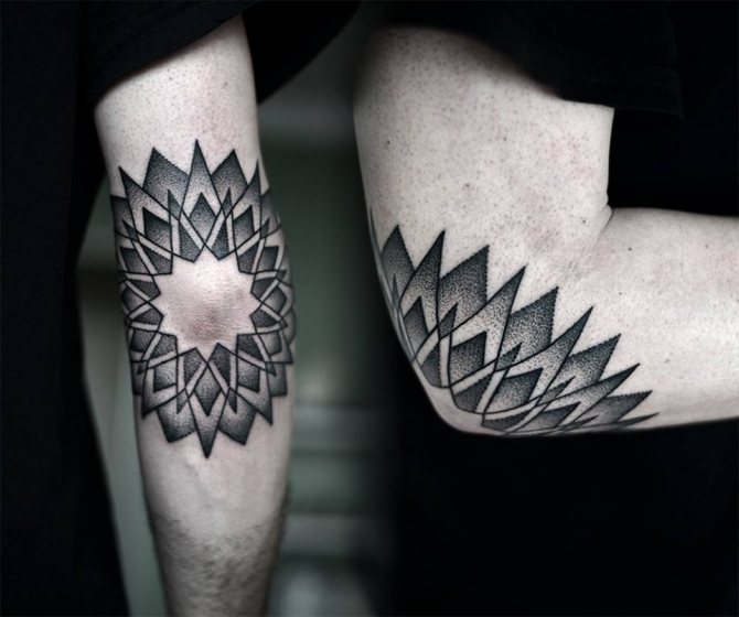 The elbow tattoo has its own rich history and has long formed stereotypes around it. It is traditionally believed that a tattoo on the elbow can only be used by men, but it is never applied to the body first. Many believe that such tattoos are associated with criminal, but this connection is very mediocre. It is worth noting that nowadays such tattoos are not used on the body as the first, they rather complement the overall picture on the body. Preferably on the elbow men wear an image of ornament, abstraction or old-school style.