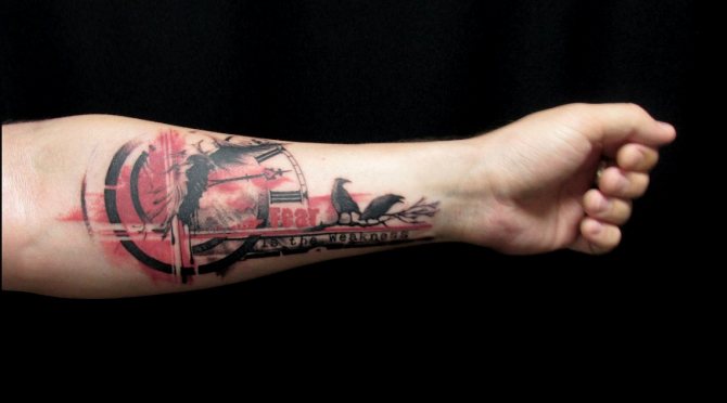 When choosing where to place the image, it is important to consider whether the tattoo should be visible, or whether it will be hidden from view. The arm - then the optimal place for a tattoo, as it can be divided into several zones: the elbow, sleeve, wrist, shoulder or forearm.