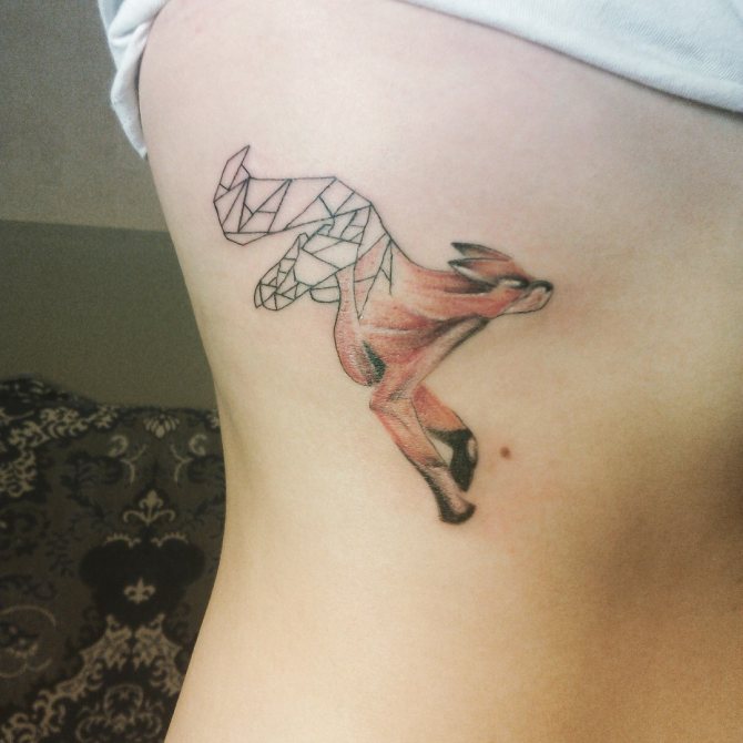 Quite often girls apply to their bodies tattoos in the form of various animals. In this style, images of foxes, dogs, elephants, rabbits and members of the feline family look especially harmonious.