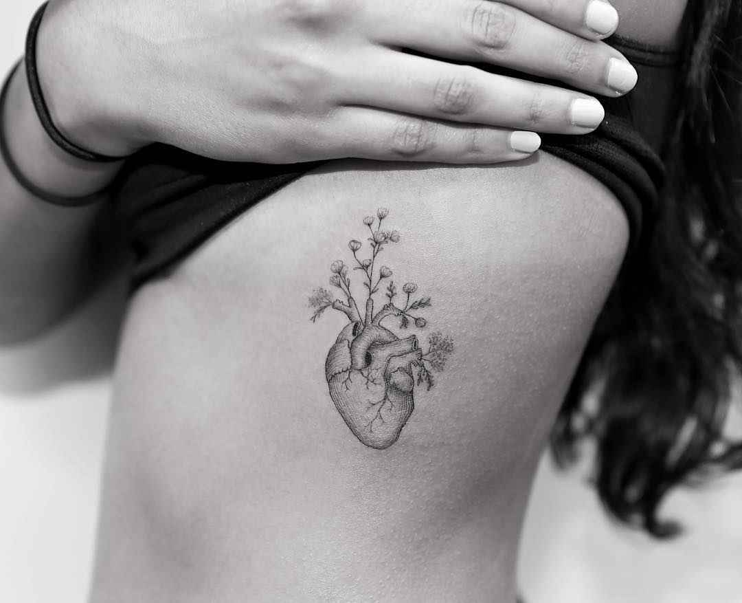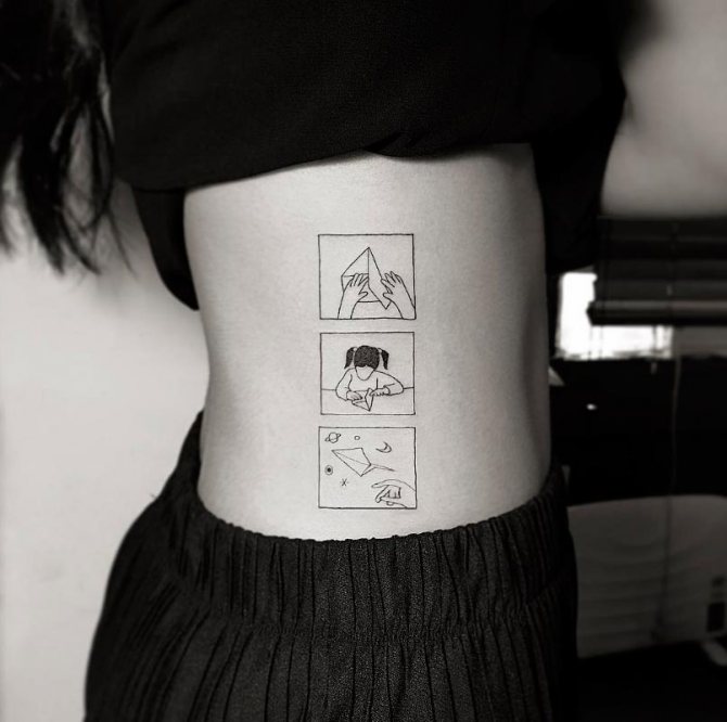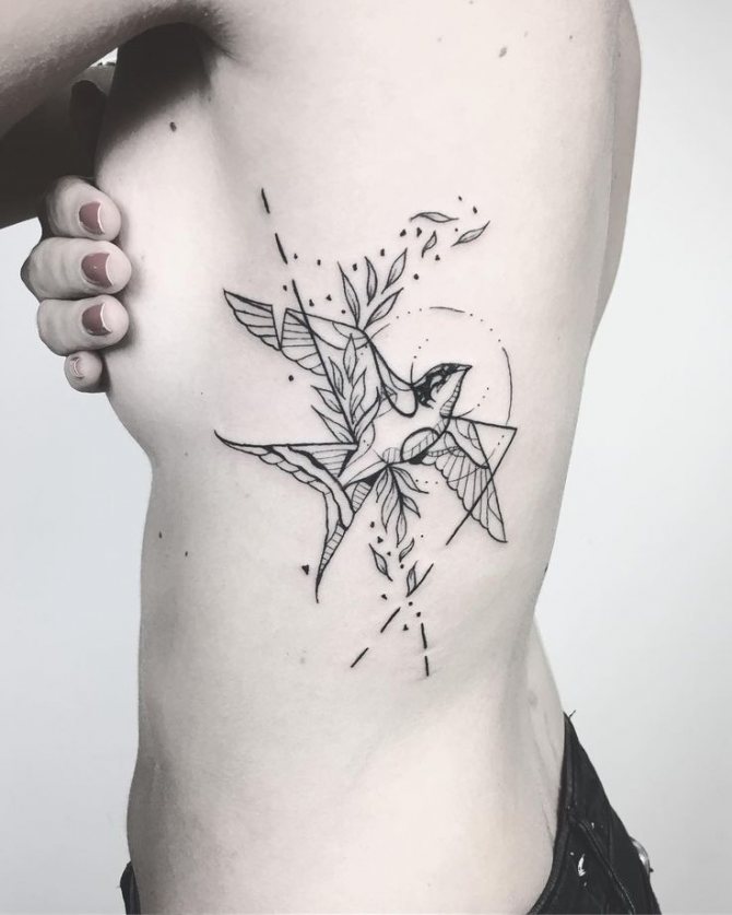 Among the most successful sketches for a tattoo on the rib in girls consider: