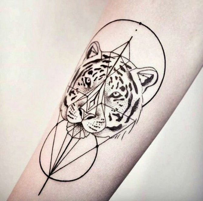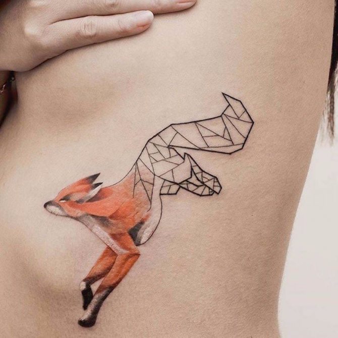 Clarity of lines, minimalistic design, black and white colors. As a rule, such patterns do not carry much meaning. But with their help, you can easily hide skin defects - scars or stretch marks. Geometry appeared not so long ago, but has already become very popular. In this style, you can depict anything - the outlines of people, animals, flowers.