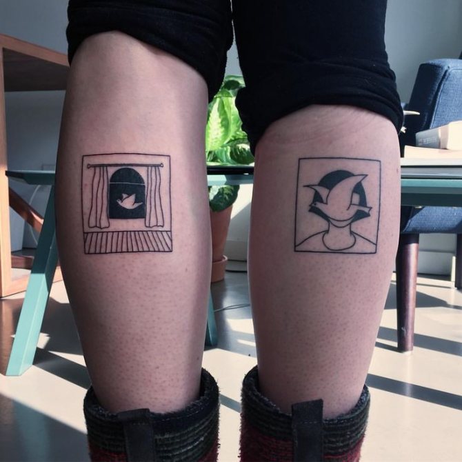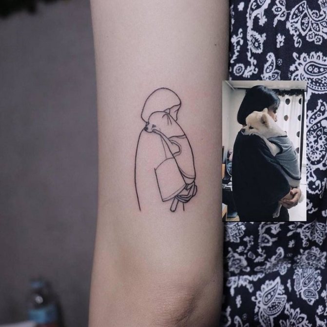 In the style of minimalism can be performed and a portrait of a person. Such tattoos look elegant and original.
