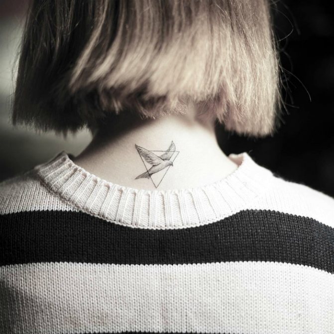 Miniature tattoos, made in the style of minimalism, it is recommended to place on the wrist, neck, fingers, feet, between the collarbones. Some women dare to place them in a secluded area of the face, for example, along the hair growth area.