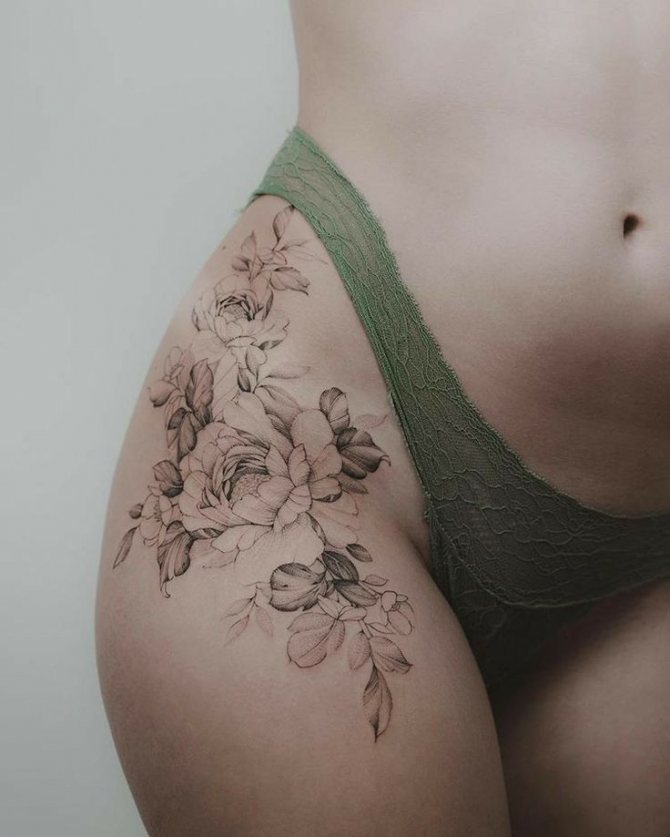 Tattoo-flower emphasizes femininity and sophistication of its owner.