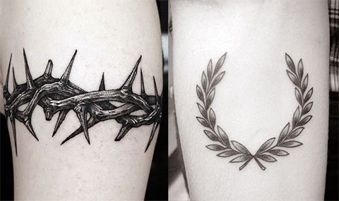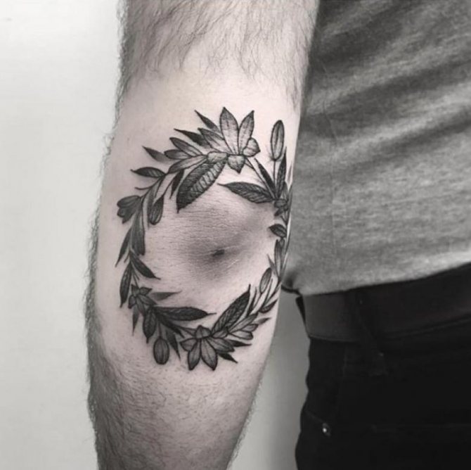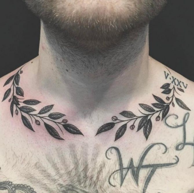 Tattoo Laurel wreath choose extraordinary ladies with strong charisma. This is a sign of a charming and talented man, able to defeat circumstances, problems, their own negative traits.
