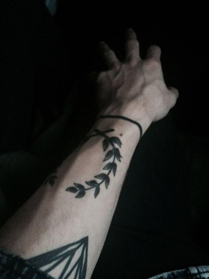 Among the rare meanings of the tattoo is the association with eternity, memory, and immortality. Always the green plant is attributed to symbols of eternal life, renewal and rebirth of the immortal soul, union between the world of the living and the dead. In terms of mysticism, the composition can be considered as a talisman against the influence of evil forces, a protection against disease and fear, as well as uncertainty in your own abilities.