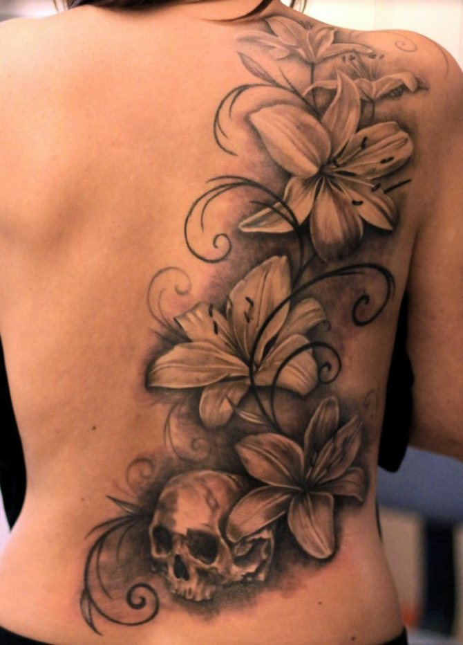 - On the back. The flower on the back of the girl speaks of her unapproachability, pride, arrogance.If such a drawing is on the collarbone, it indicates the sexual temperament of its possessor.