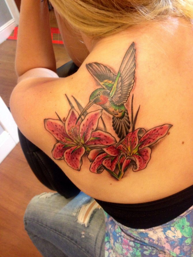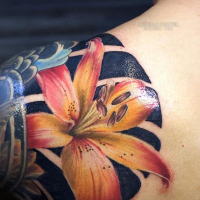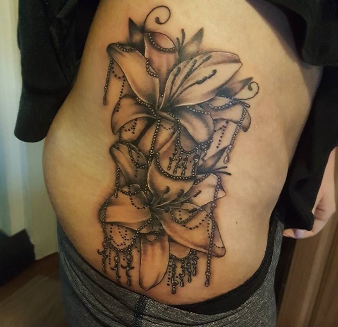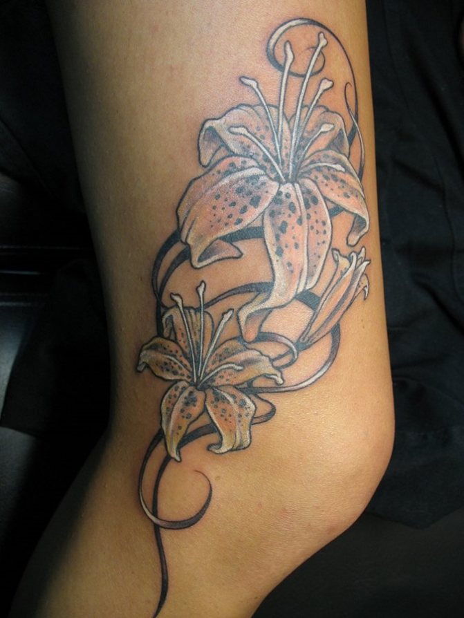 Tattoo with the image of a lily can decorate any part of a woman's body:
