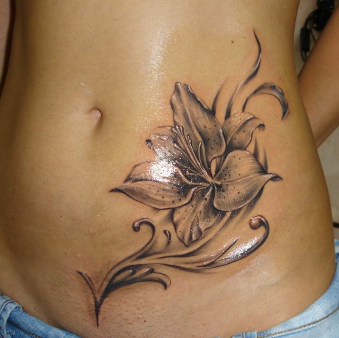 - On the abdomen. Girls who consider their figure attractive, apply lilies on the stomach.