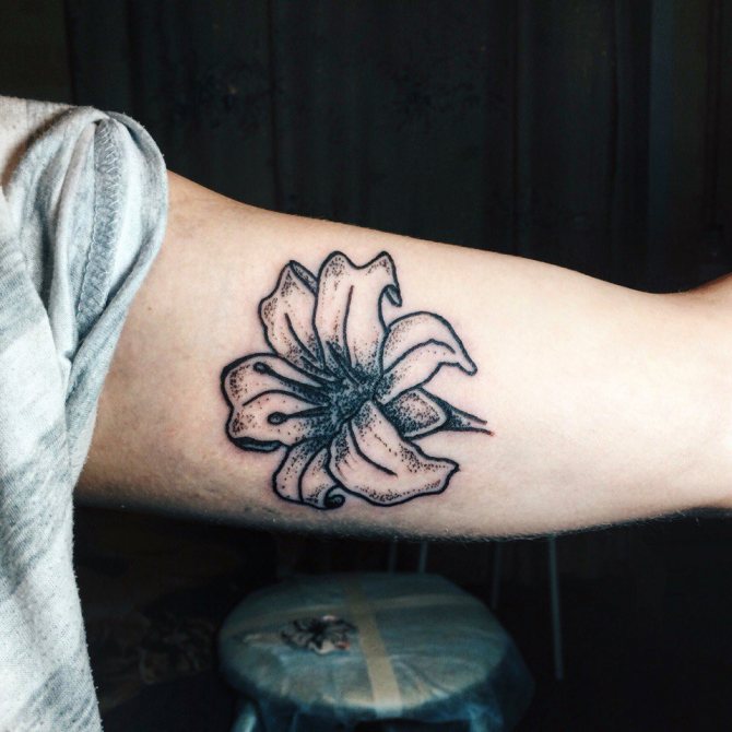 Passionate women with a strong character in the world of tattoo specialists recommend to give preference to the opened buds in dark colors. The black lily Will indicate temperament and passion of the girl.