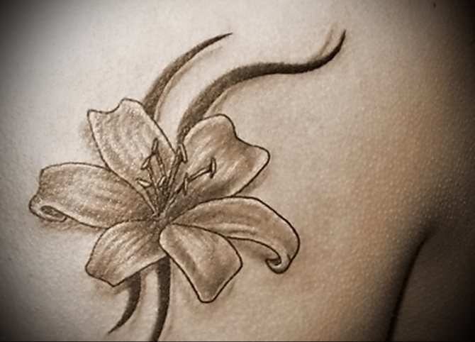 One of the attractive appearance will be the lily tattoo, as it is a noble and beautiful flower. The image of the lily can be found on icons, the hands of Gabriel. In addition, this delicate flower in Christianity is the embodiment of the Virgin Mary, so the tattoo with the image of the lily is extremely popular among people of great faith.