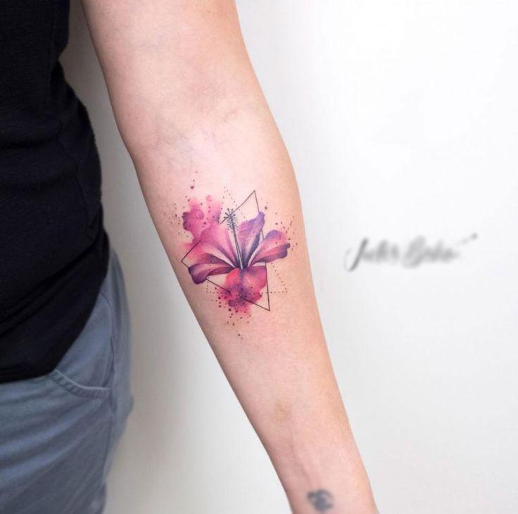 It is best to stuff the lily tattoo in the style of realism, watercolor, minimalism, linework, geometry.