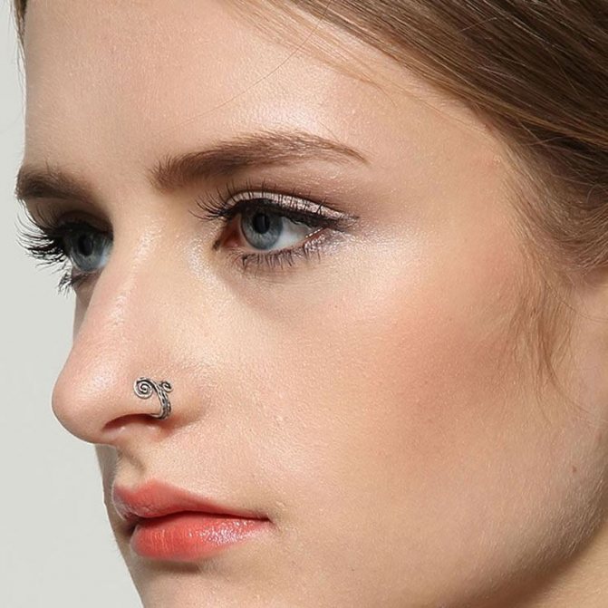 Decorate the nose earrings and other metal jewelry in our country have become relatively recent. The first to such an experiment with his appearance decided youth with their rebellious and free-spirited. Initially, a guy or girl with a pierced nose automatically reckoned to the representatives of the subculture and radical musical trends. Today, the original decoration in the nose adorn the appearance of all who want to look unusual and stylish.
